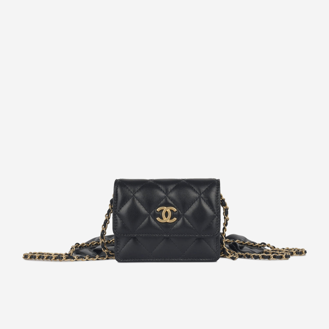 Chanel Quilted Mini Flap Bag with Detailed Chain Lambskin Black GHW (Microchip)