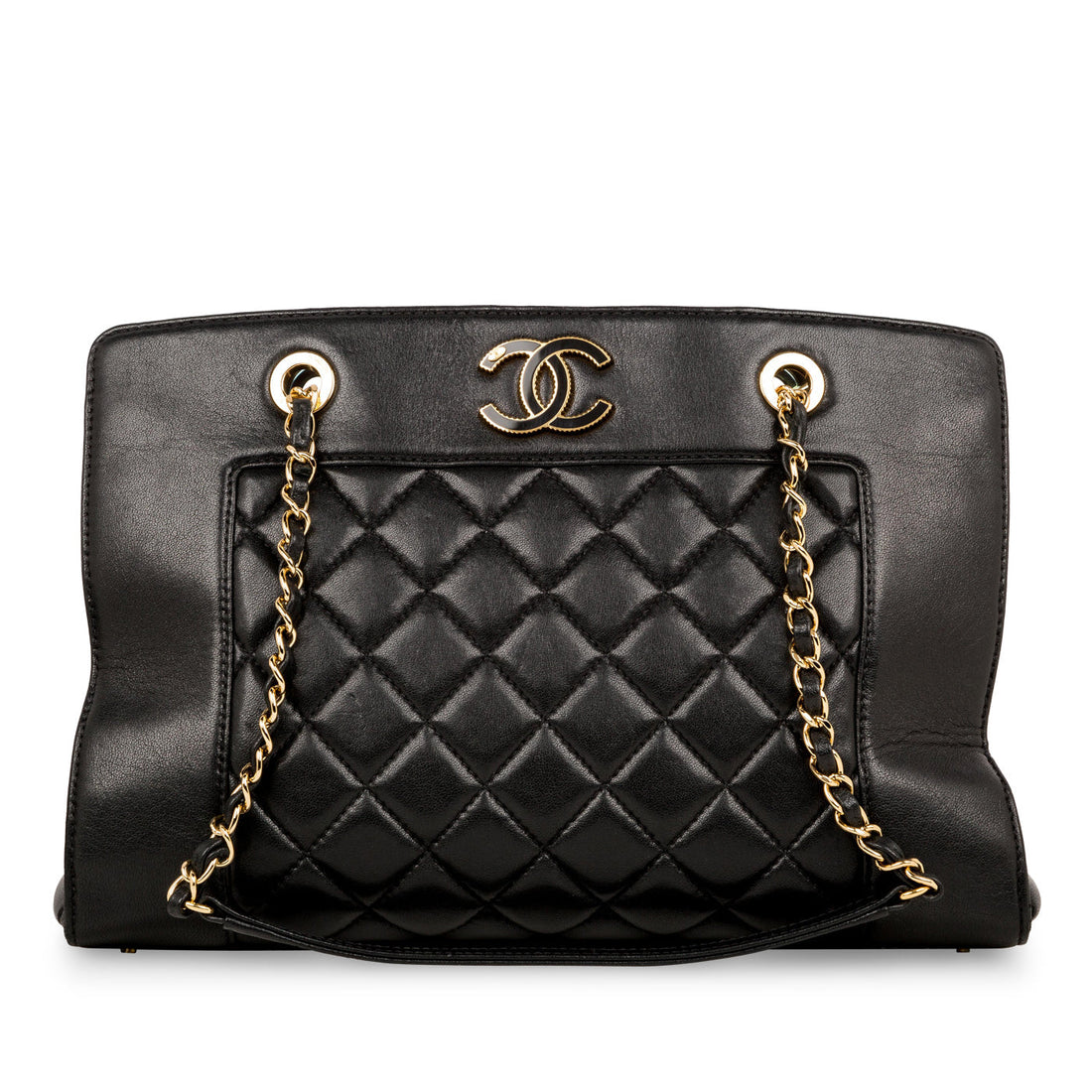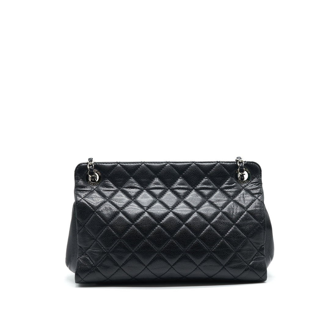 Chanel Quilted Leather With Chain Shoulder Bag XL Black SHW