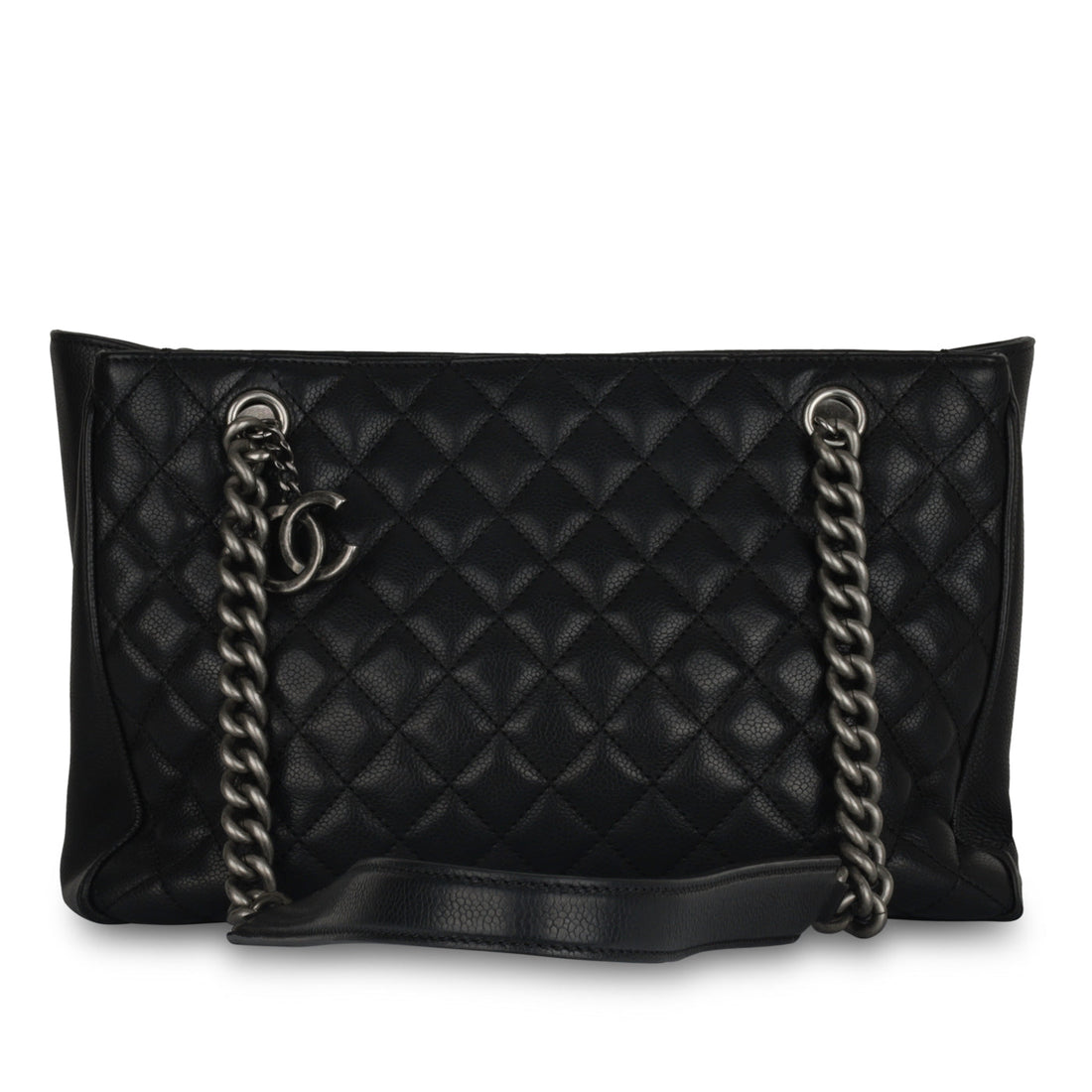 CHANEL QUILTED LEATHER TOTE BAG WITH CHAIN IN CARVIAR BLACK SHW