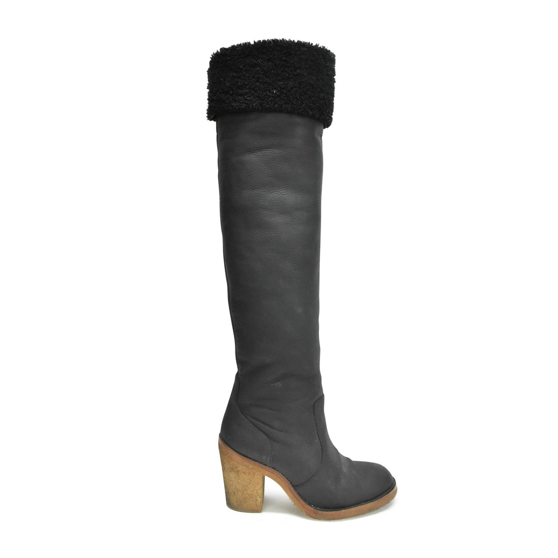 Chanel knee high shearling lined boots in soft black leather with small silver CC logos...