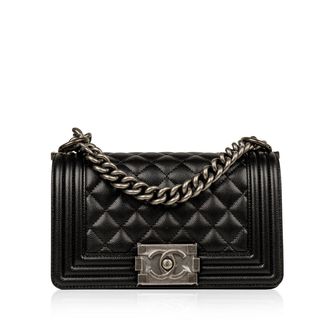 Chanel Small Boy Bag Messenger Black Caviar Antique Gold Hardware