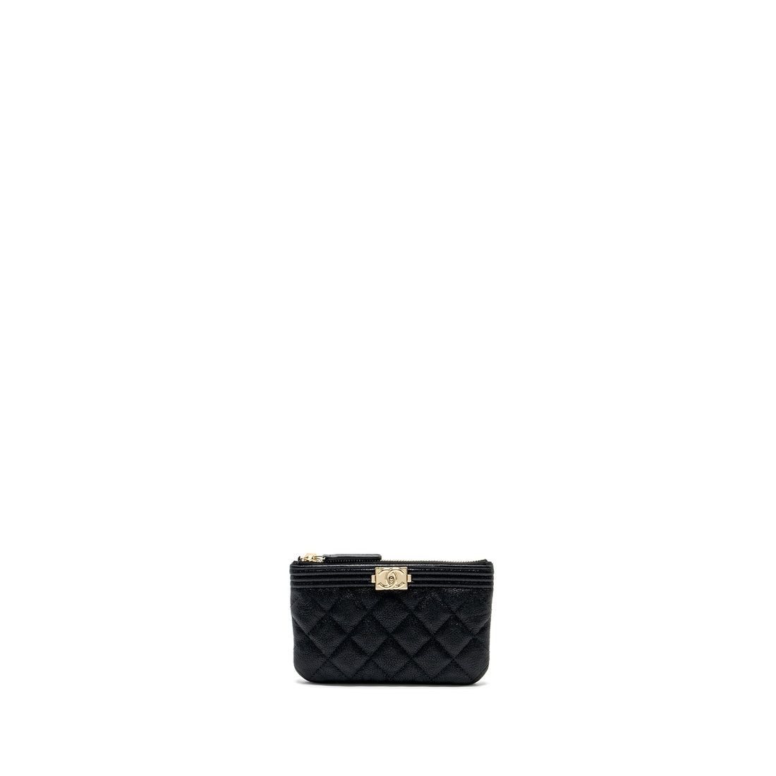 Chanel Small Boy Zip Pouch Shiny Grained Calfskin Black GHW
