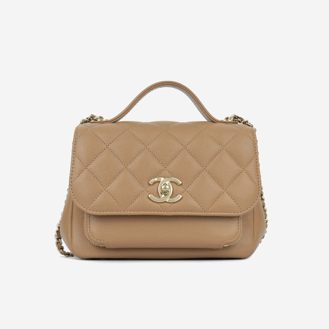 Chanel Small Business Affinity Backpack Light Grey Shiny Caviar Light Gold Hardware