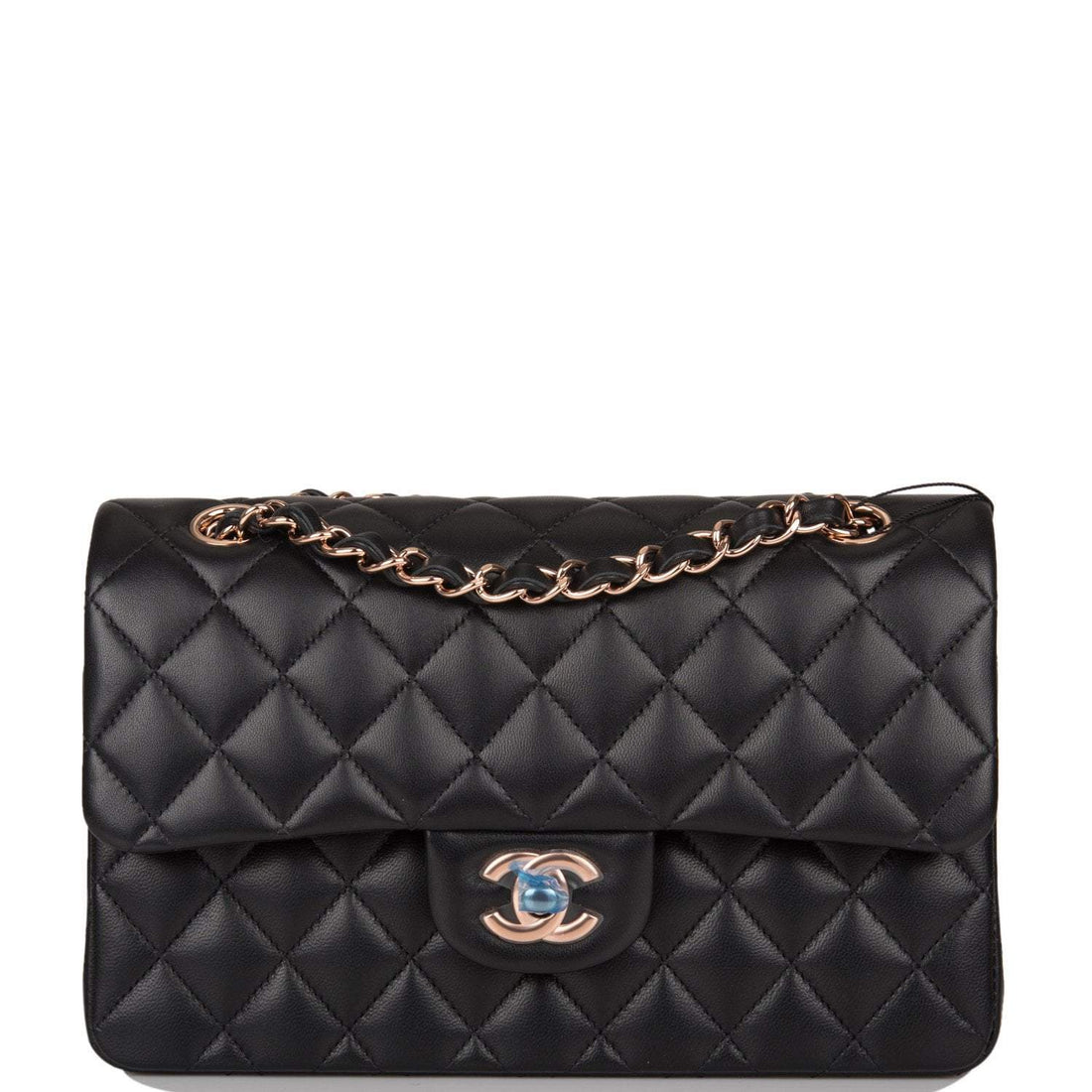 Chanel Small Classic Double Flap Bag Black Lambskin Rose Gold Hardware
