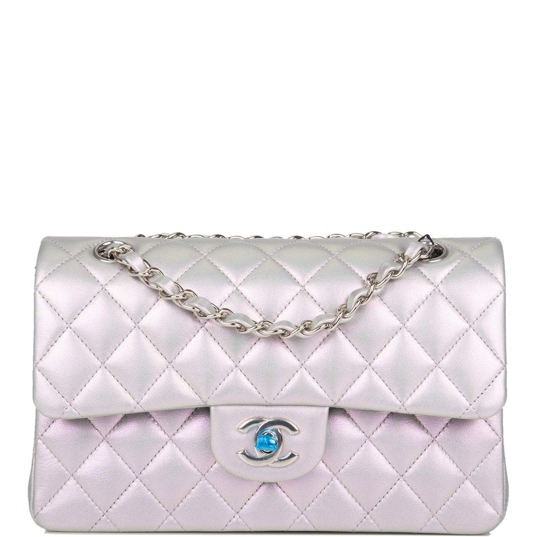 Chanel Small Classic Double Flap Bag Silver Iridescent Lambskin Silver Hardware