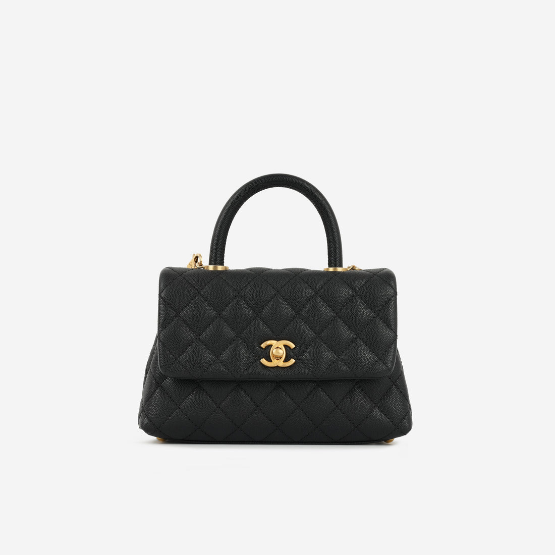 Chanel Small Coco Handle Flap Bag Black Caviar Gold Hardware