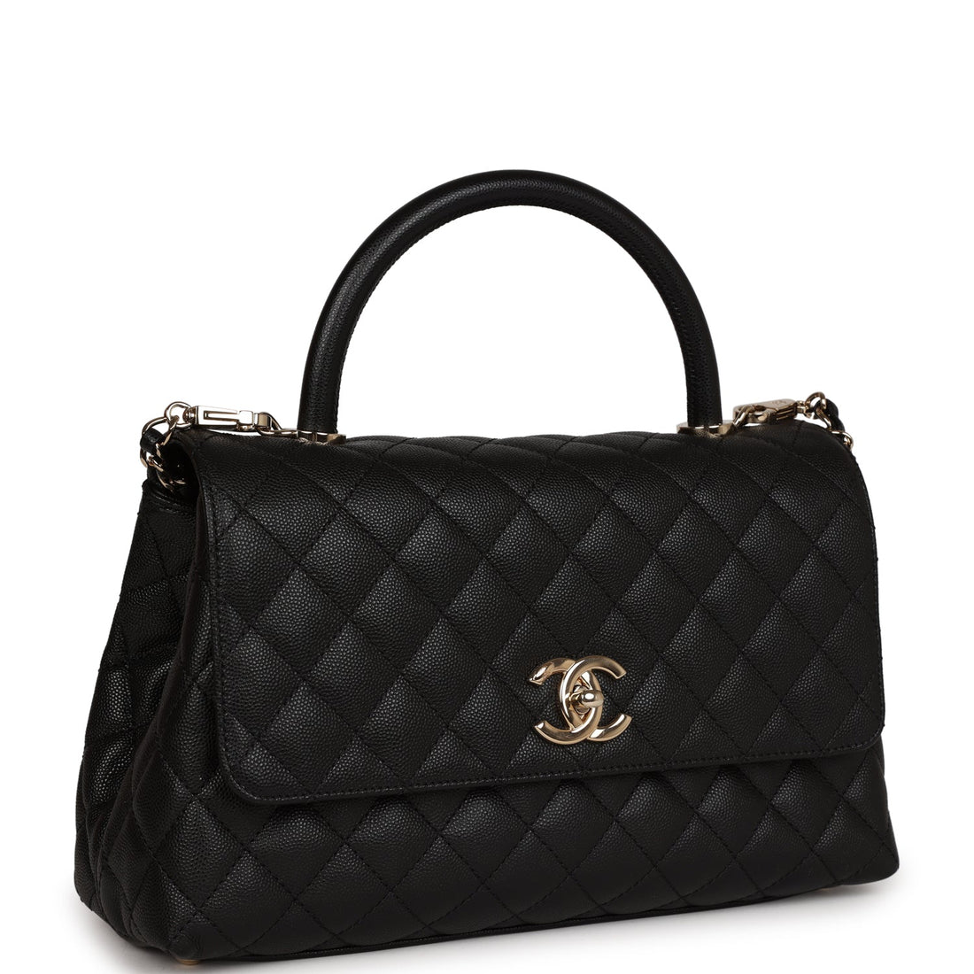 Chanel Small Coco Handle Flap Bag Black Caviar Light Gold Hardware
