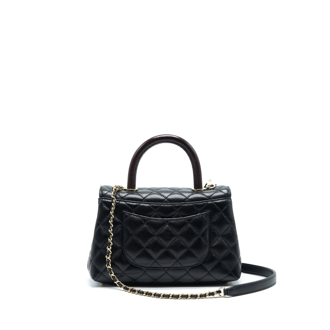 Chanel small coco handle with lizard embossed handle caviar black LGHW (microchip)