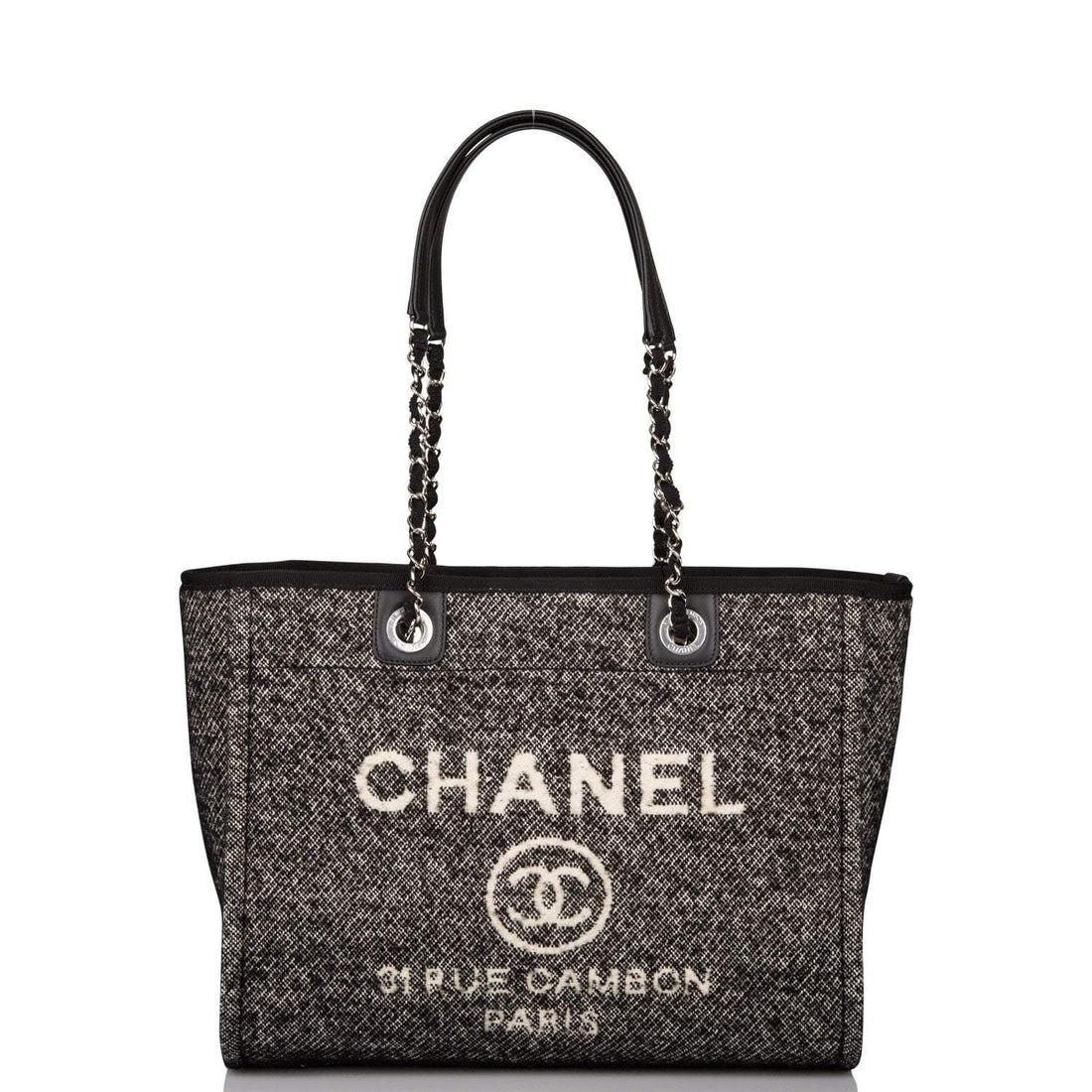 Chanel Small Deauville Shopping Bag Black Wool Silver Hardware