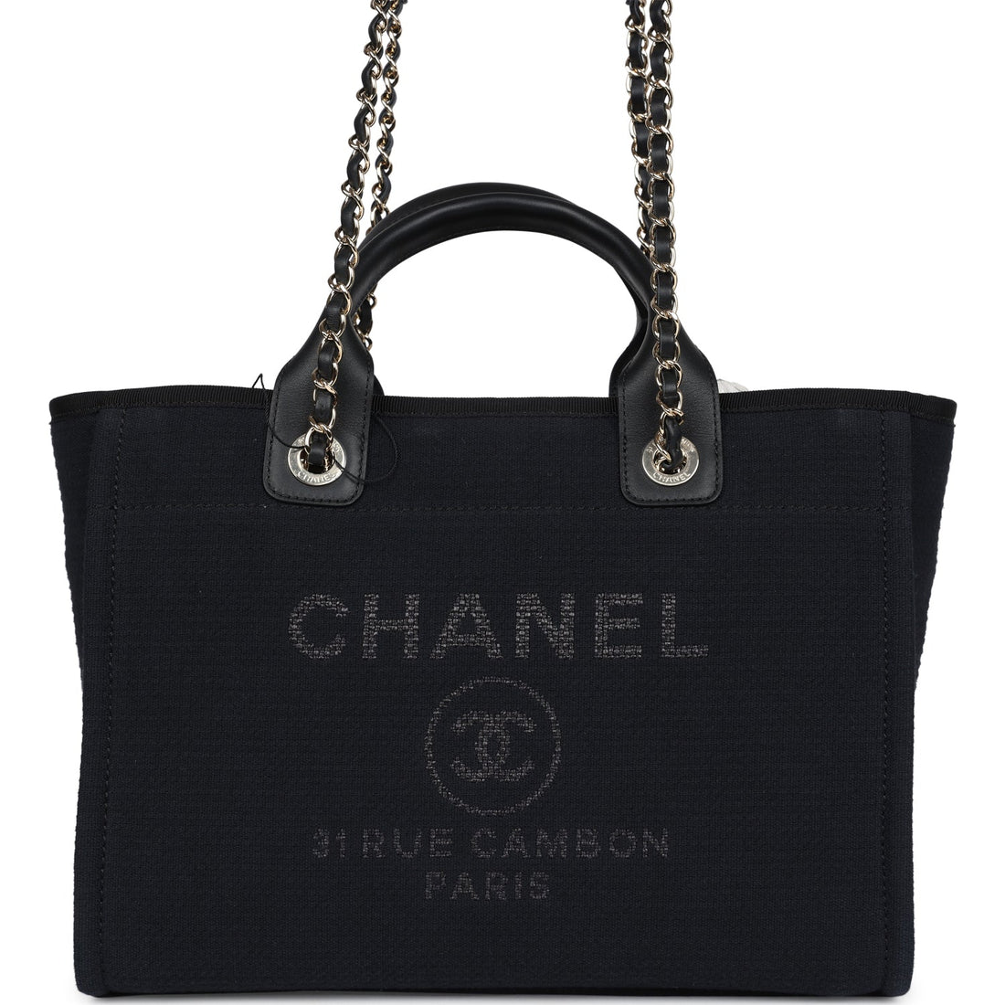 Chanel Small Deauville Shopping Tote Black Canvas Light Gold Hardware
