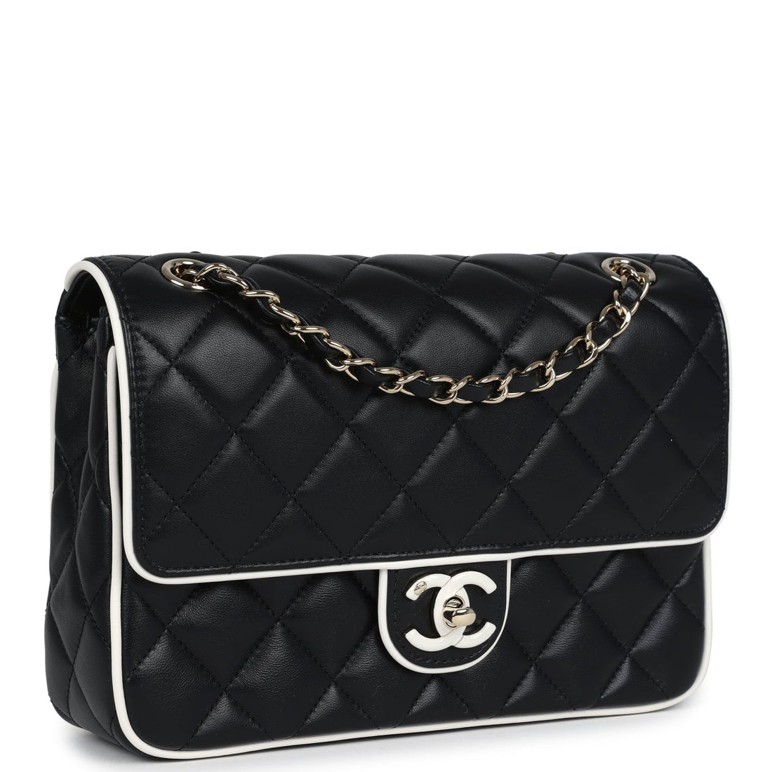 Chanel Small Graphic Frame Flap Bag Black and White Lambskin Light Gold Hardware