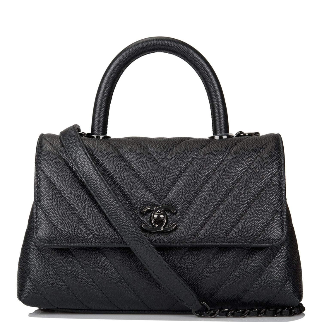 Chanel SO Black Chevron Caviar Mini Coco Handle Flap Bag Black Hardware