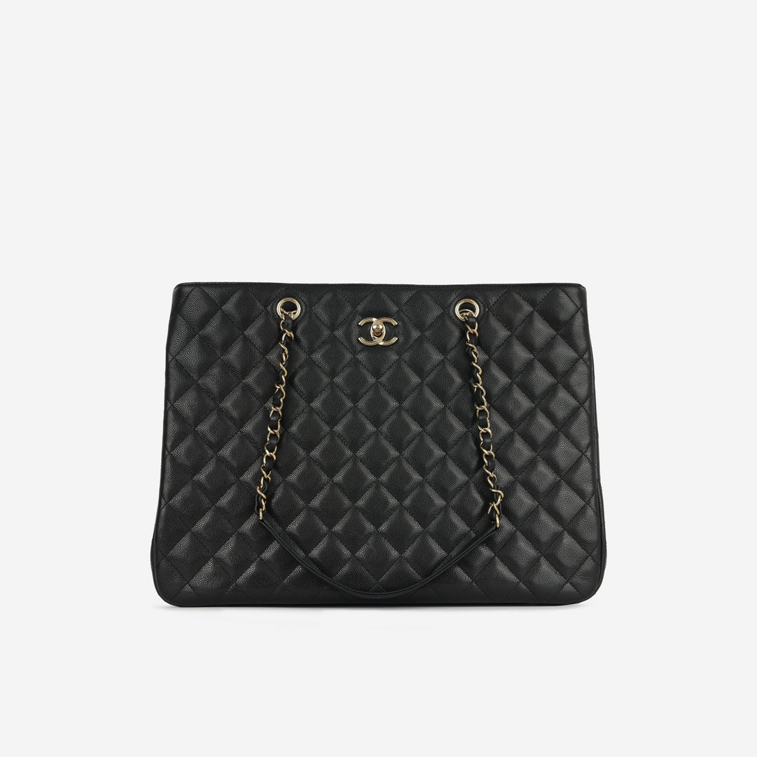 Chanel Timeless CC Shopping Tote Black Caviar Champagne Gold Hardware