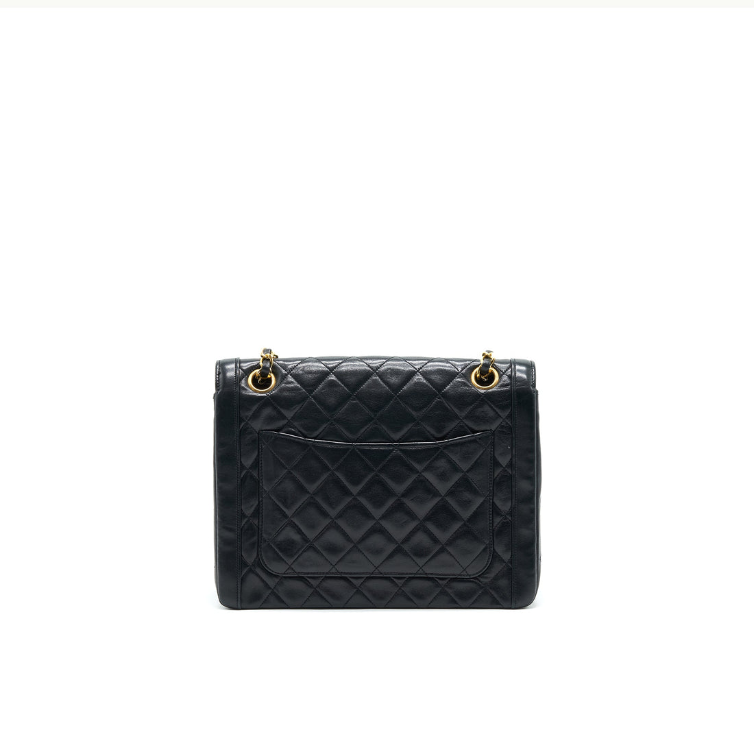 BRAND: CHANELMODEL: VINTAGE CAMERA BAG (117xxxx) COLOR: BLACK & GOLDSIZE: D 6.5CM x H 21CM x W 30CMMATERIAL: LAMBSKIN...