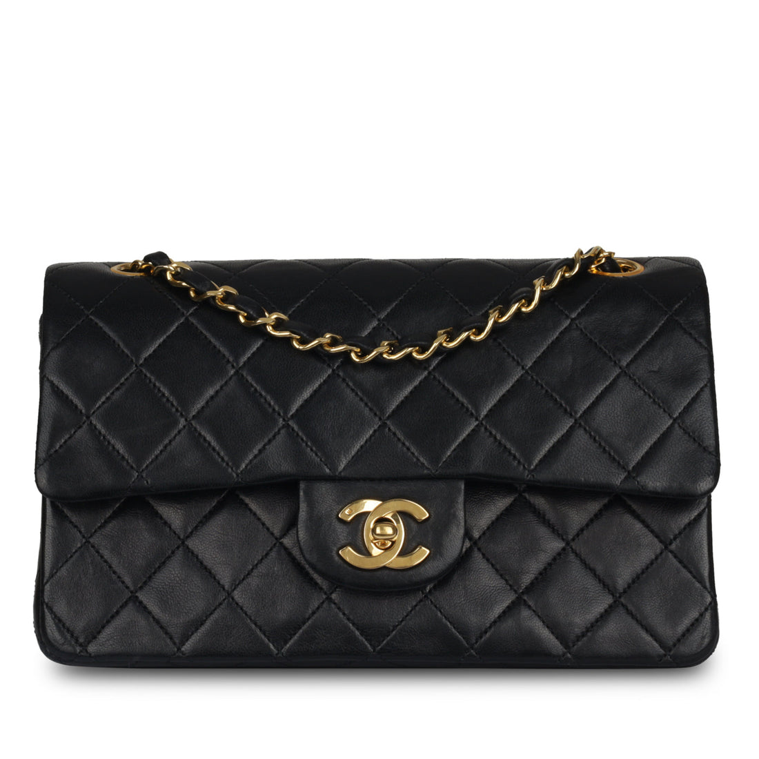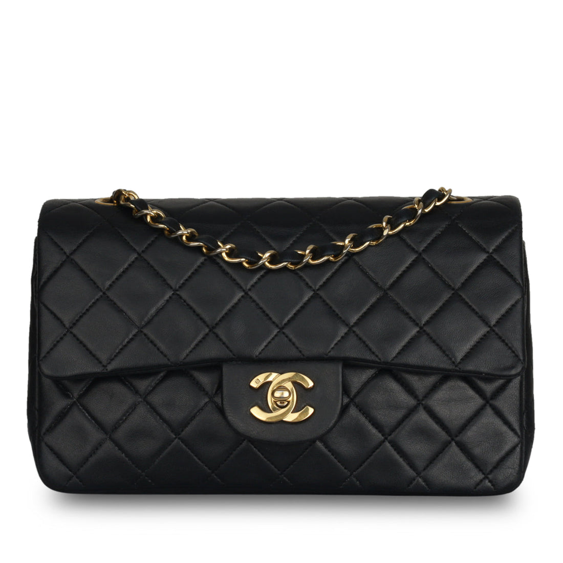CHANEL VINTAGE CLASSIC DOUBLE FLAP (341xxxx) SMALL BLACK LAMBSKIN LEATHER GOLD HARDWARE NO DUST COVER