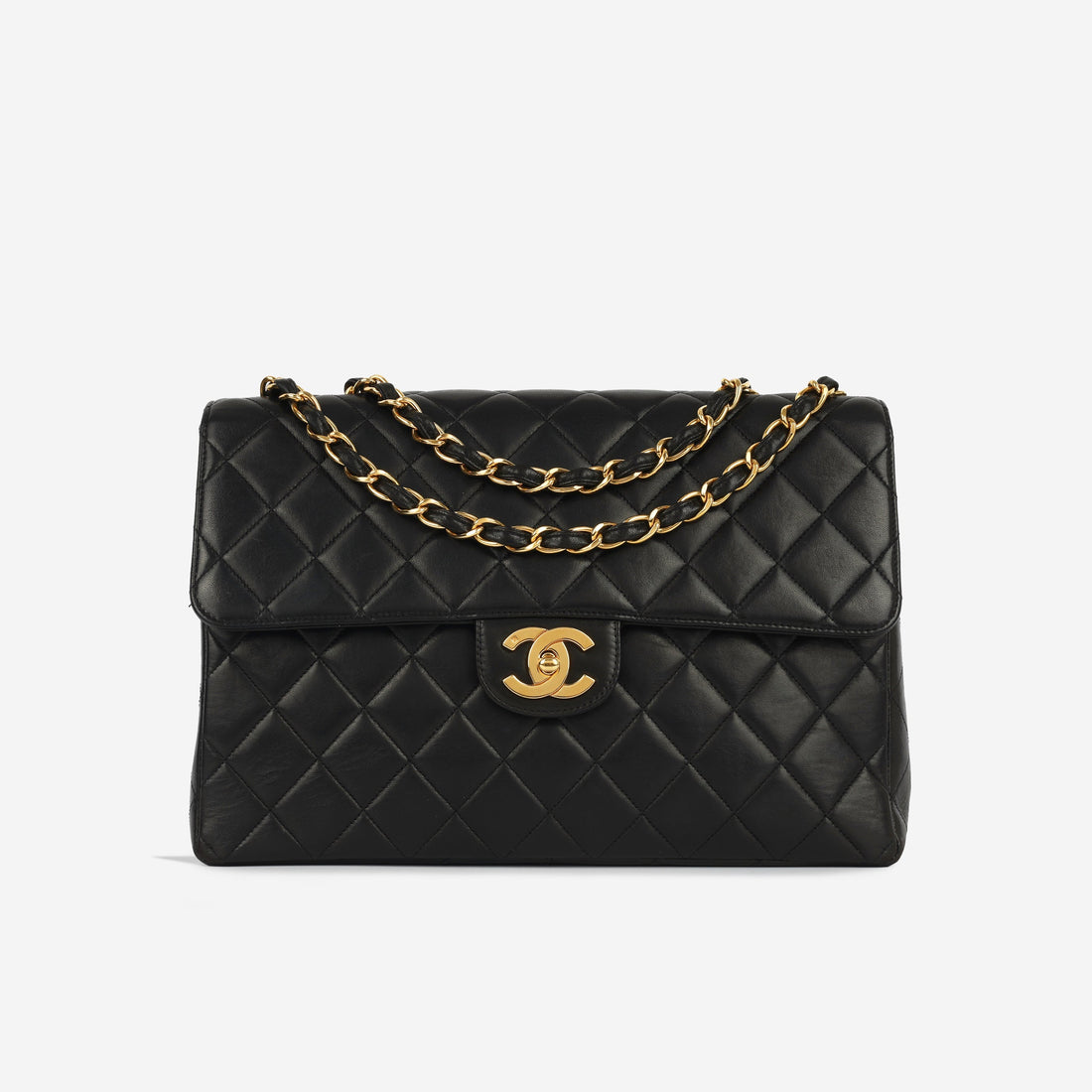 Crafted from Chanel's signature black lambskin leather, this vintage gem is an absolute must-have for...