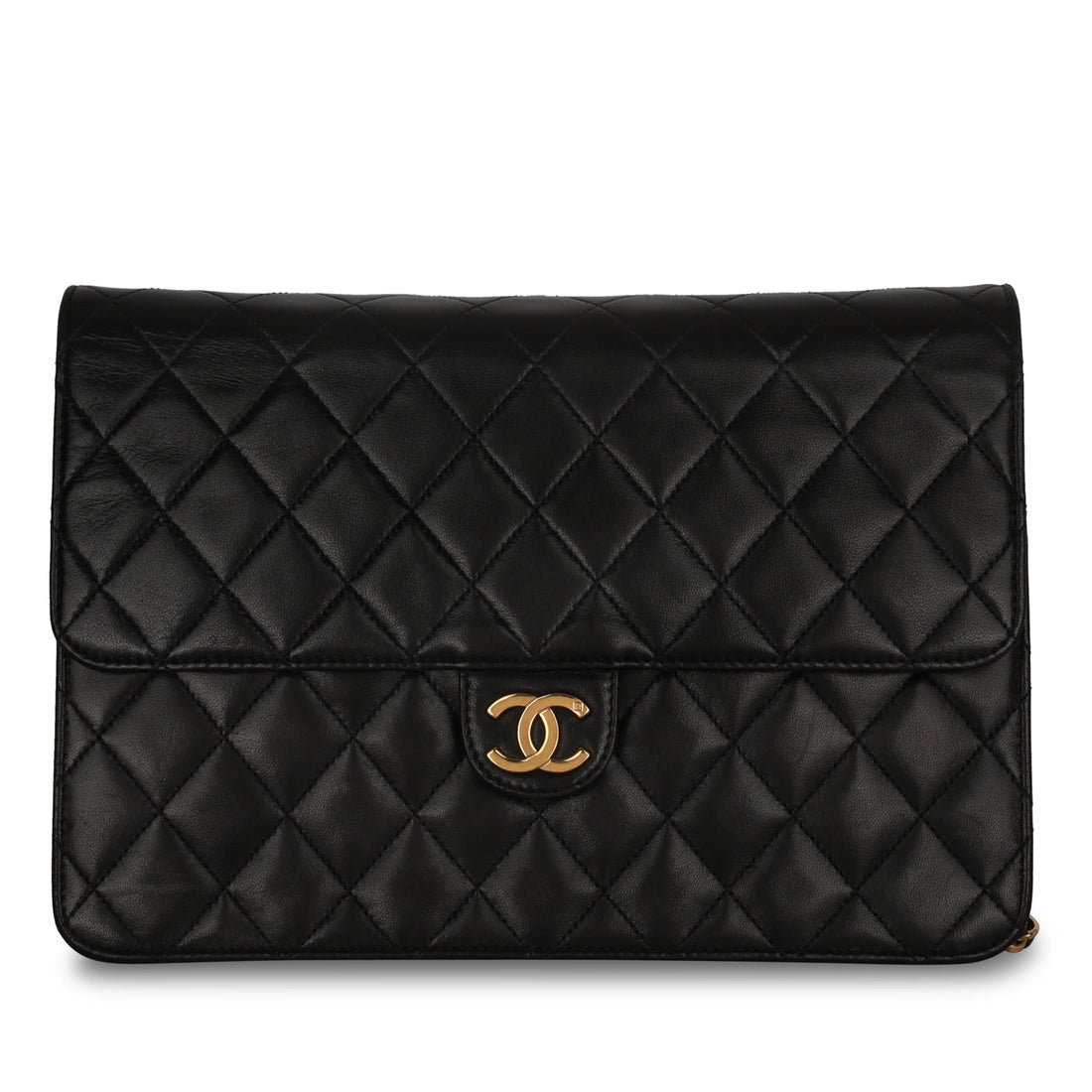 Crafted from Chanel's signature black lambskin leather, this vintage gem is an absolute must-have for...