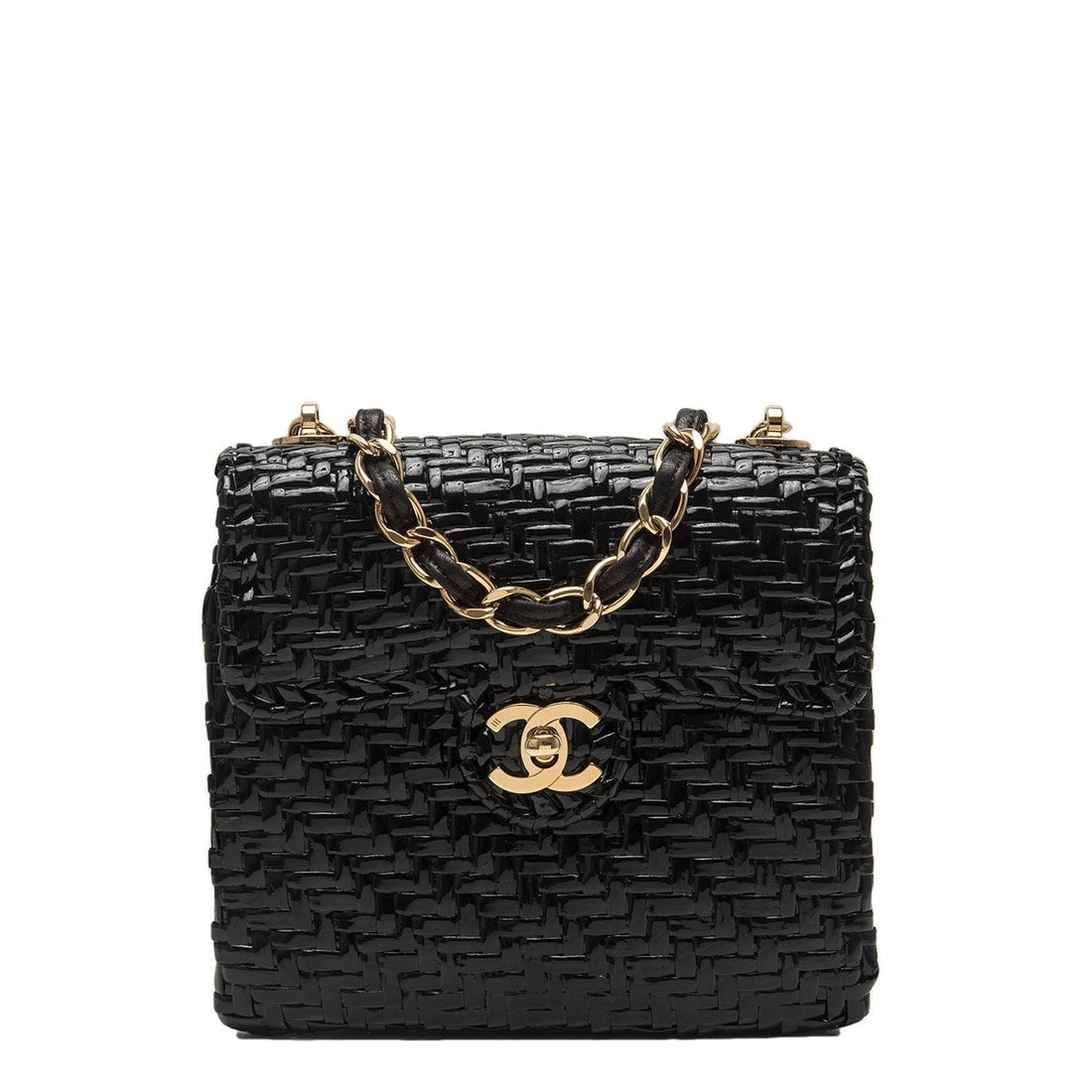Chanel Vintage Glazed Black Wicker Mini Flap Bag