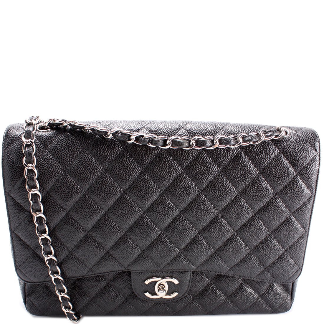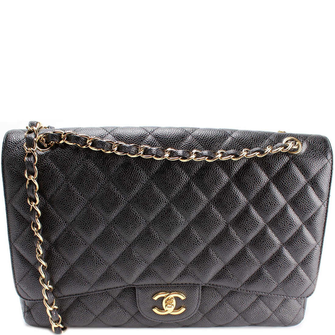 This Chanel Classic Flap Maxi is guaranteed 100% authentic. The exterior is in the classic Chanel Caviar...