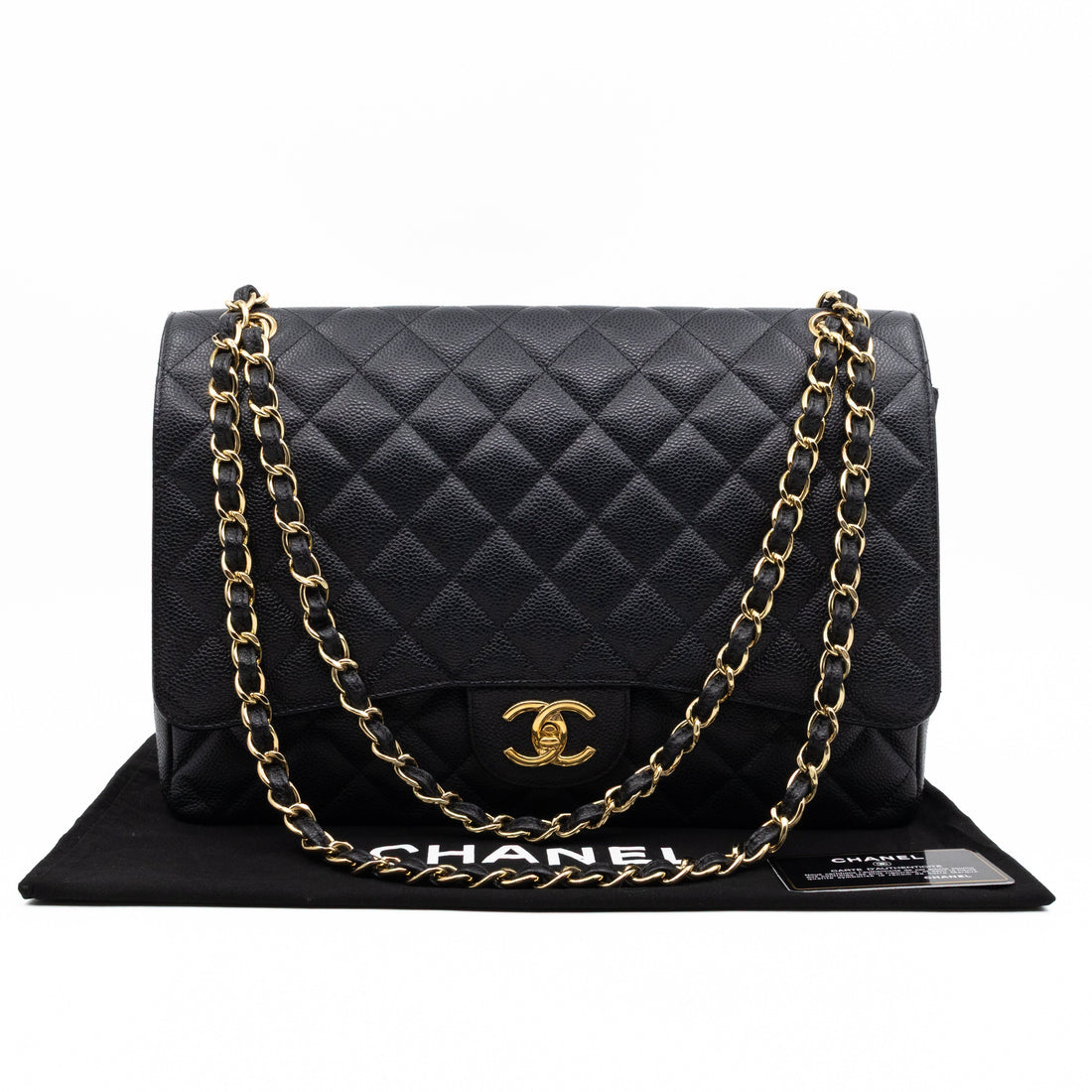 Classic Double Flap Maxi Black Caviar Leather Gold