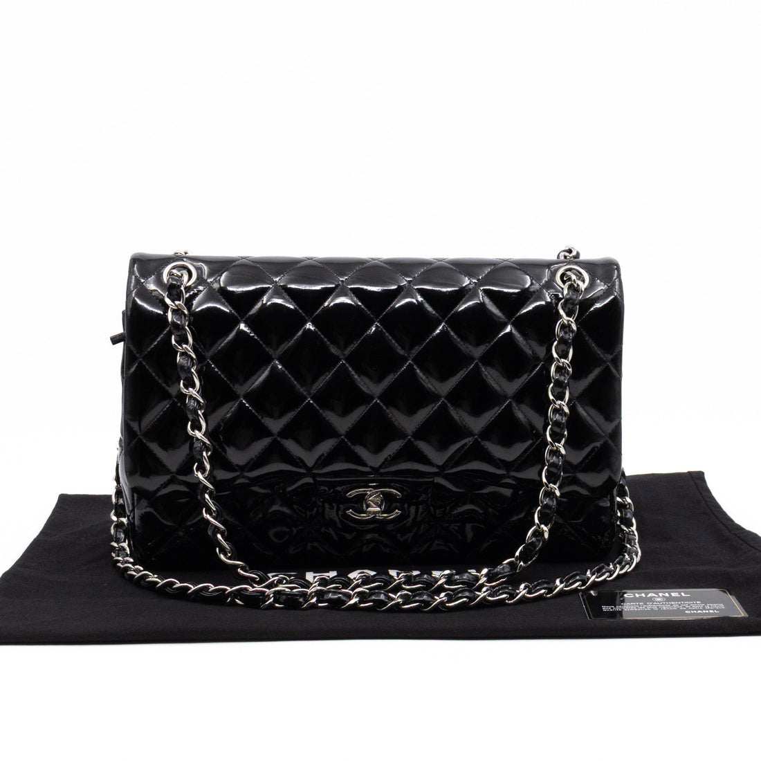 This is the classic Chanel double flap bag in jumbo size. This large timeless classic...