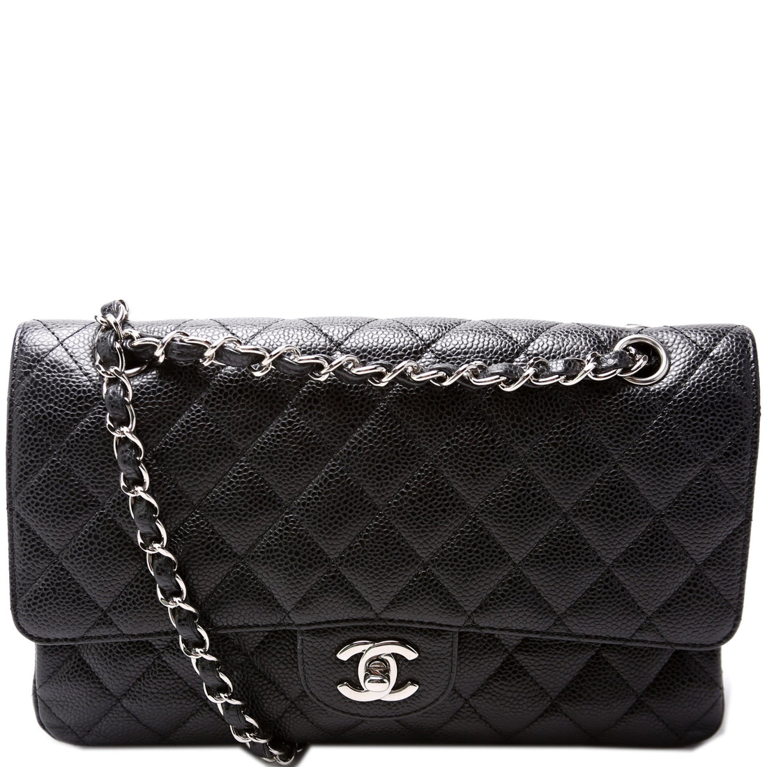 This Chanel Classic Flap Mediumis eye catching bag. The exterior is in the classic Chanel caviar...