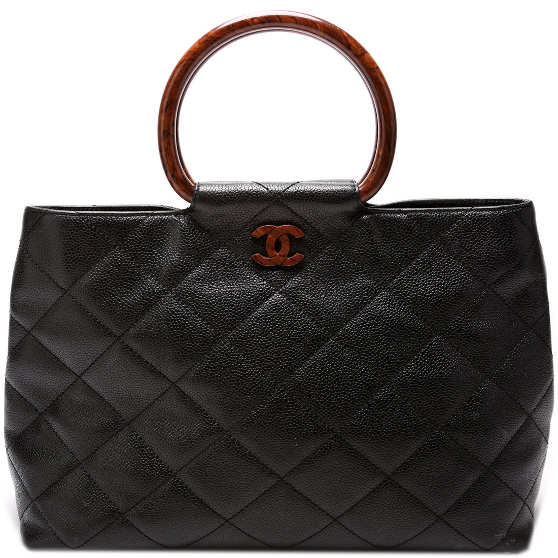 This Chanel Coco Wooden Top Handle Bagis eye catching bag. The exterior is in the...