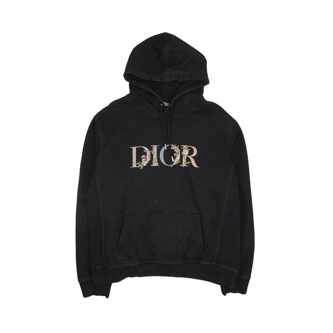 Dior hoodie sweater in black cotton with a white embroidered logo across the chest and...
