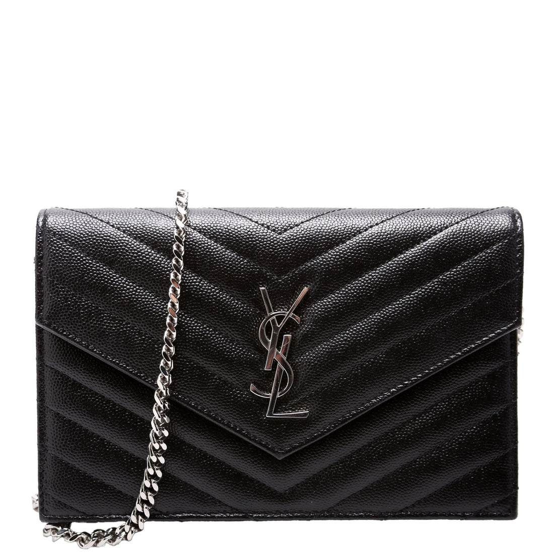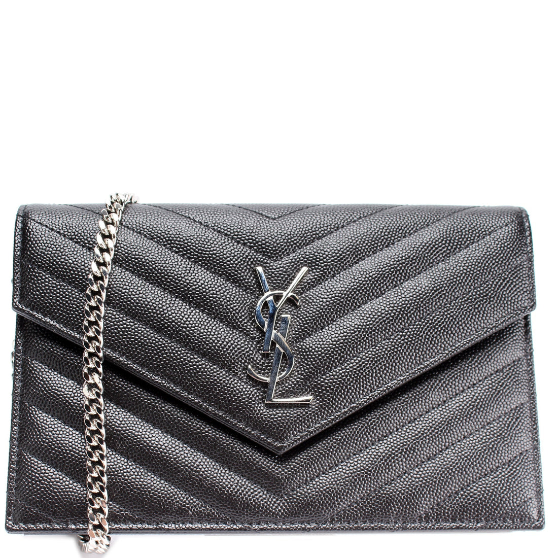 This Saint Laurent Envelope Chain Wallet is d 100% . The exterior is in the classic Saint...
