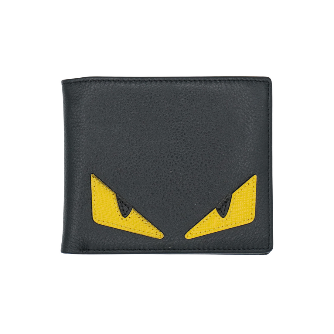 Fendi 'Monster' bi-fold wallet in black leather with yellow monster eyes on front. Interior features...