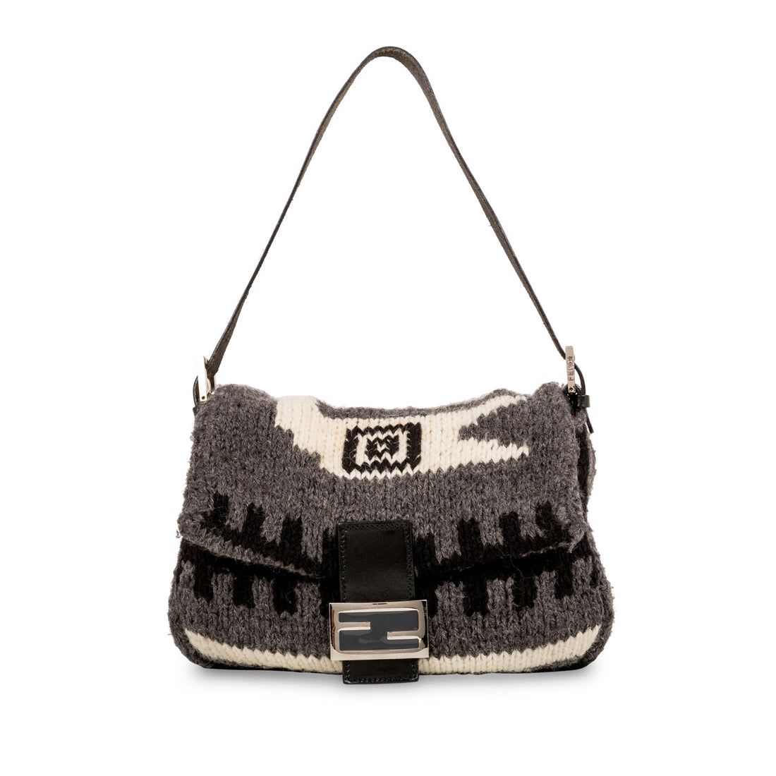 FENDI Mamma Baguette Shoulder Bag Wool Black Auth 49783BRAND : FENDI Color : Black Material...