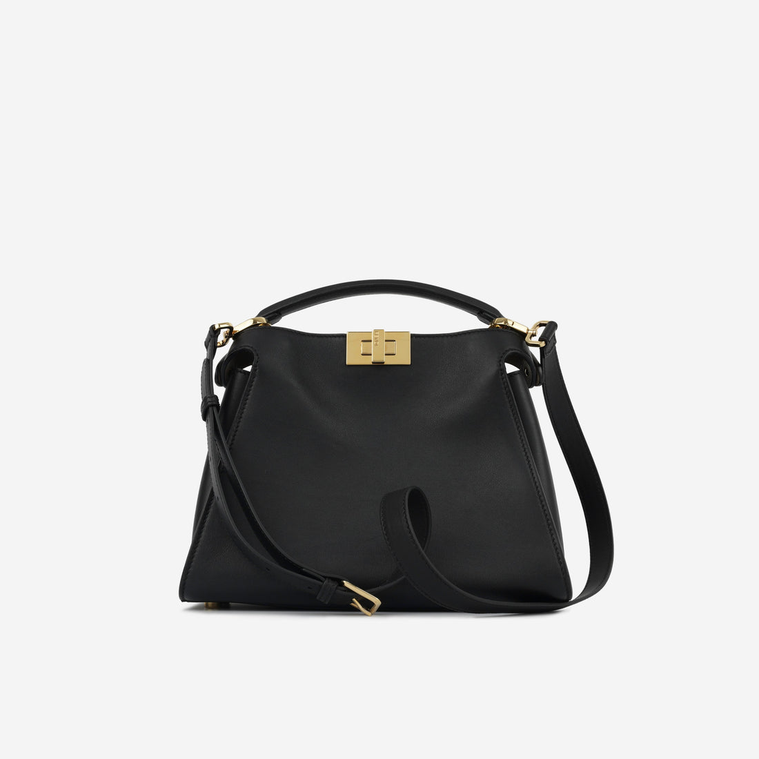 Fendi presents its iconic Peekaboo bag with smooth black calfskin leather and a pop of...