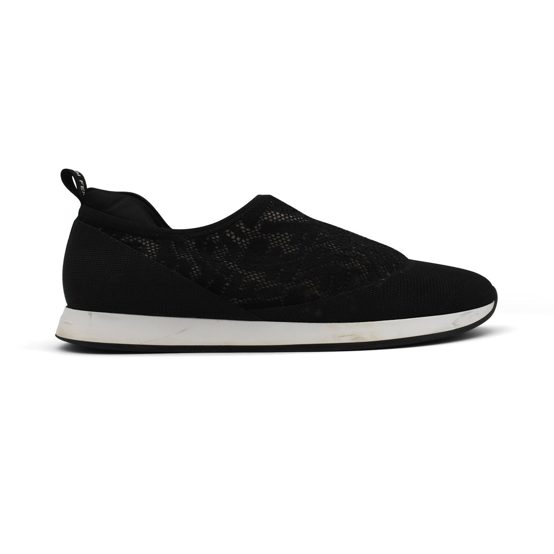 Fendi slip-on sneakers in black nylon at the toes and heels with a mesh monogram...