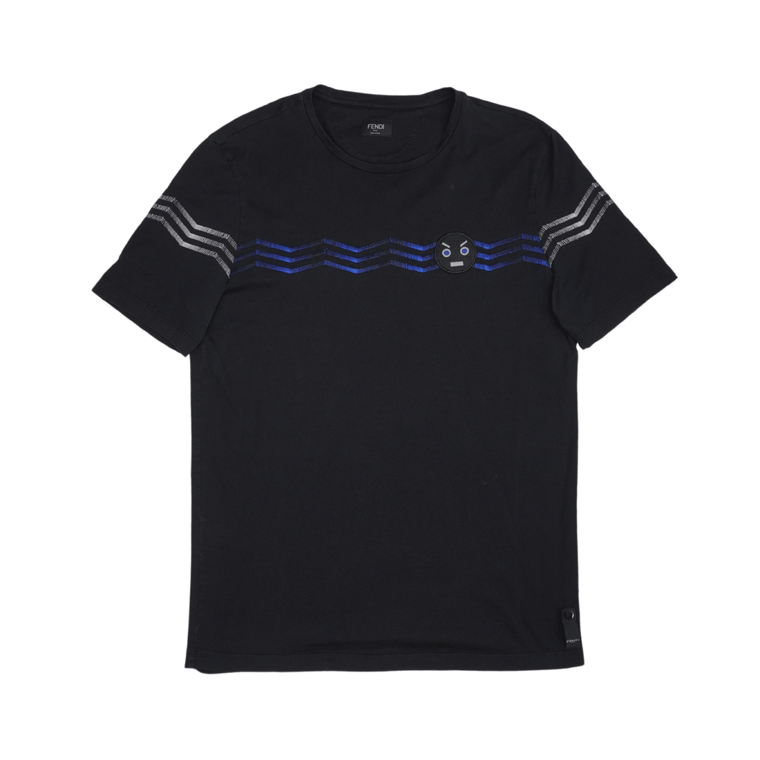 Fendi short-sleeve t-shirt in black cotton with tonal monster eye patches on the front. Includes...