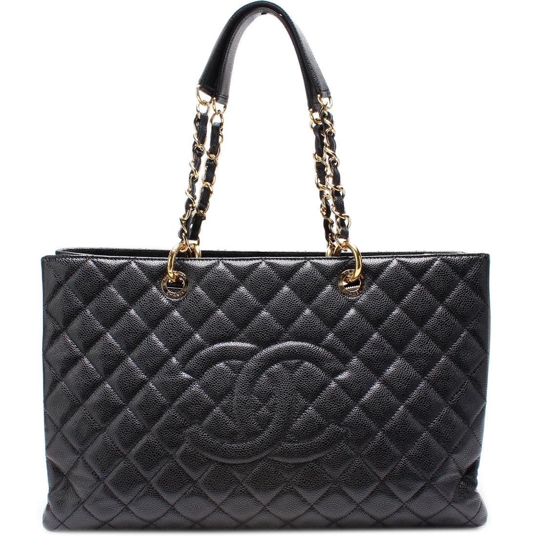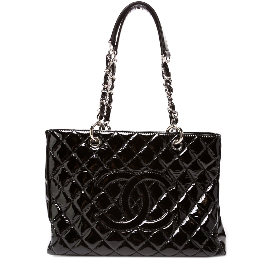 This Chanel Grand Shopping Toteis eye catching bag. The exterior is in the classic Chanel Patent Leather. Condition:...