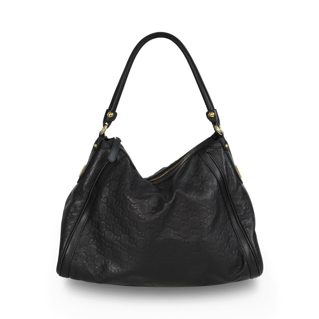 Gucci 'Scarlett' hobo shoulder bag in black Guccissima monogram embossed leather with gold hardware and...