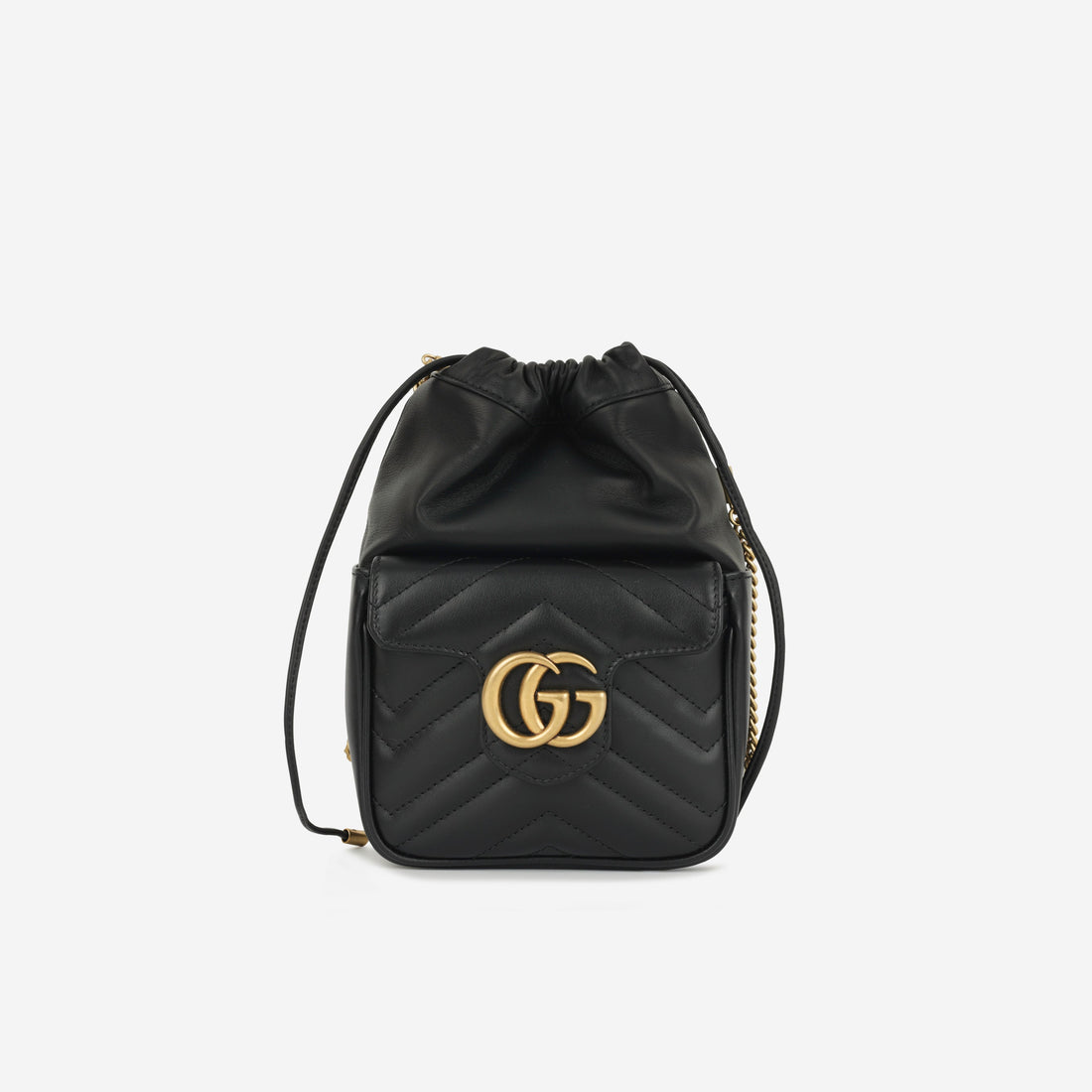The GG Marmont collection introduces a mini bucket bag in black matelassé leather with a...