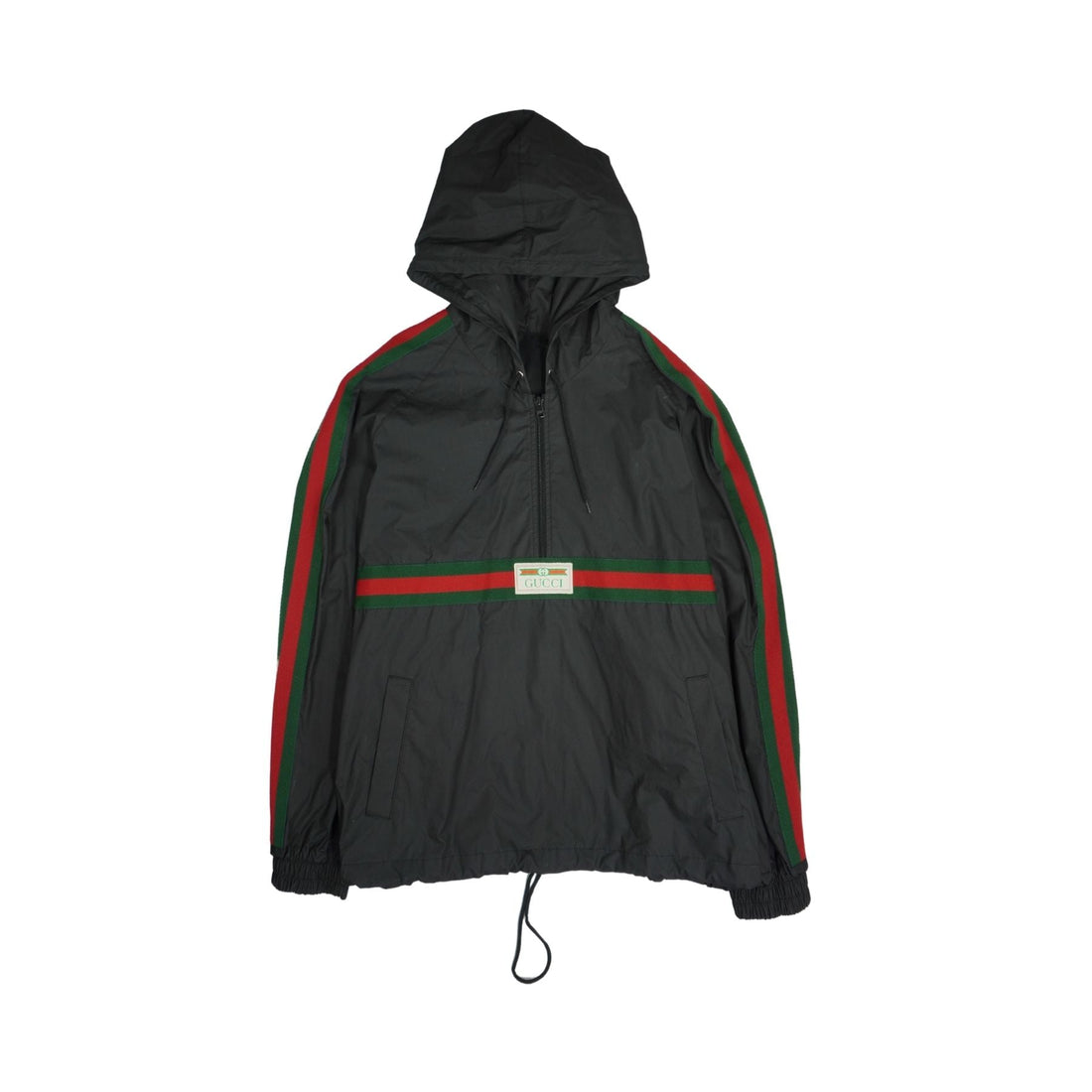 Gucci windbreaker jacket in black nylon with a front half-zip opening in black hardware, front...