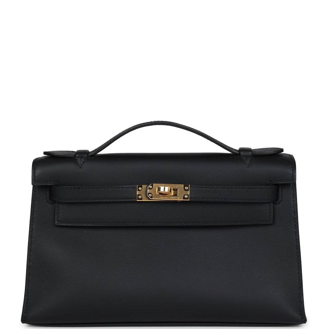 Hermes Kelly Pochette Black Swift Gold Hardware
