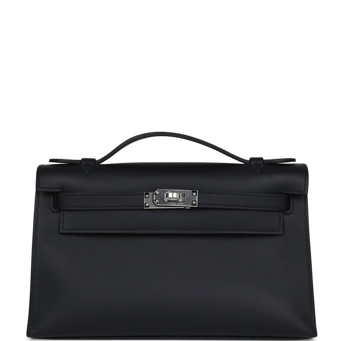 Hermes Kelly Pochette Black Swift Palladium Hardware