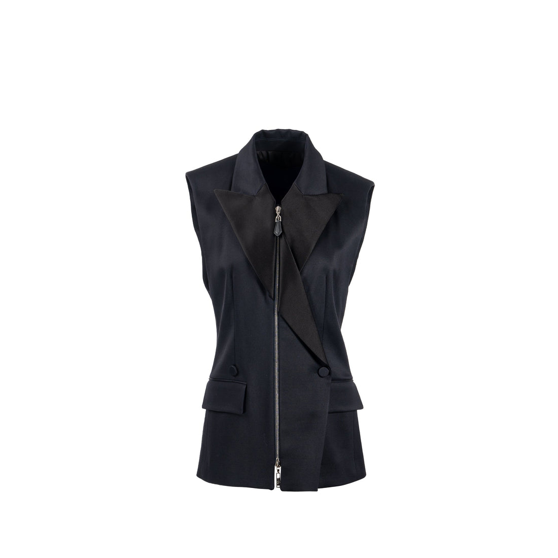 Louis Vuitton Size 36 Sleeveless Zip-Up Blazer Silk/Wool Black