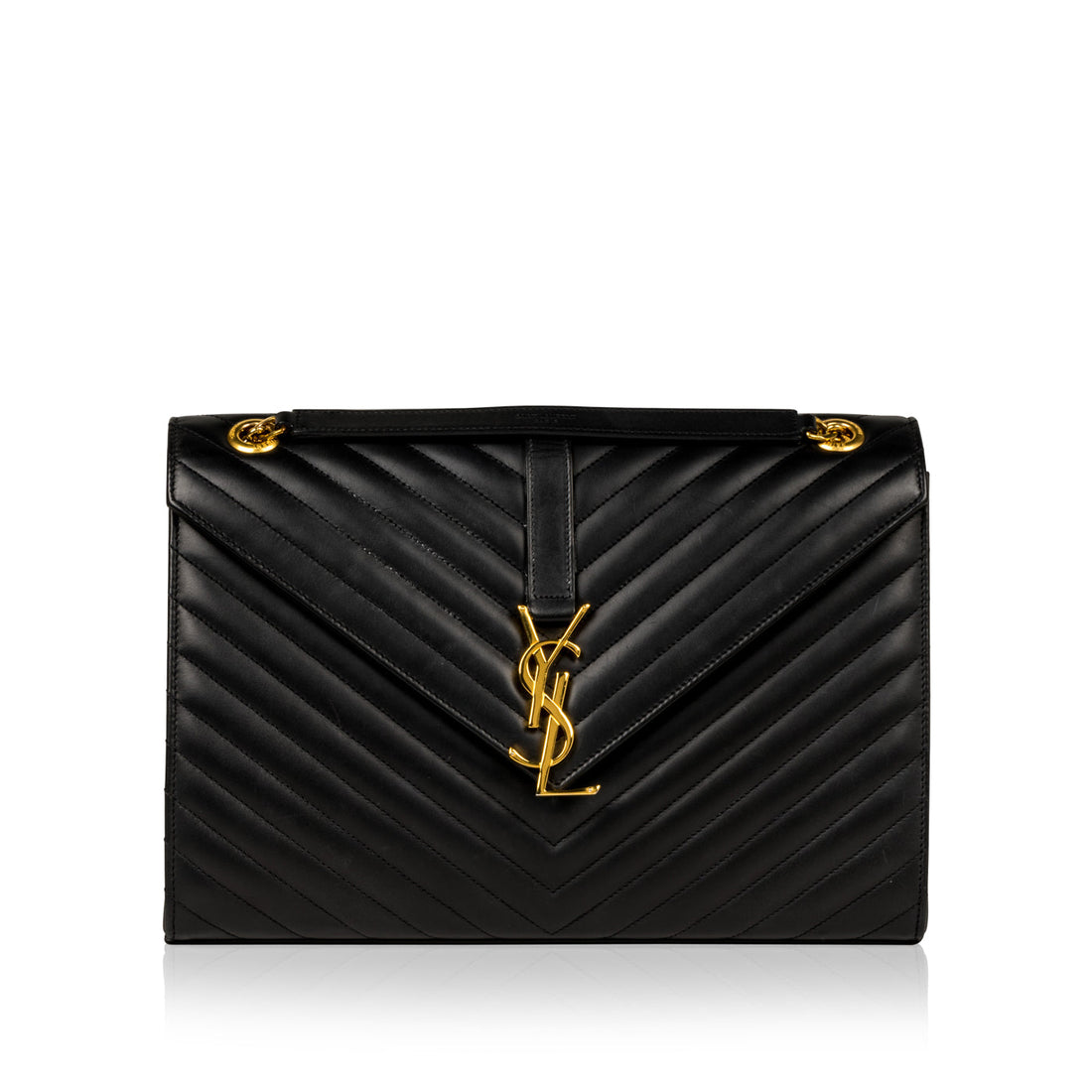 Beautifully crafted from sturdy, black leather featuring gold-tone hardware and YSL's signature "Y" symbol -...