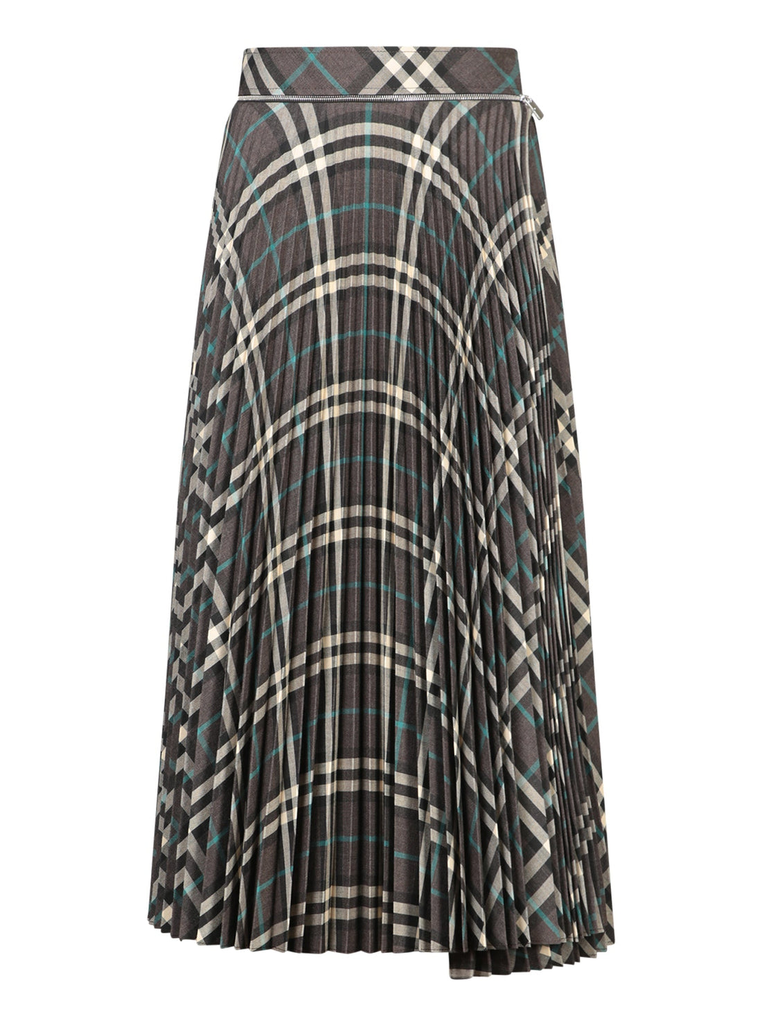 Elevate your style with this stunning pleated midi skirt. Crafted from a luxurious blend of...