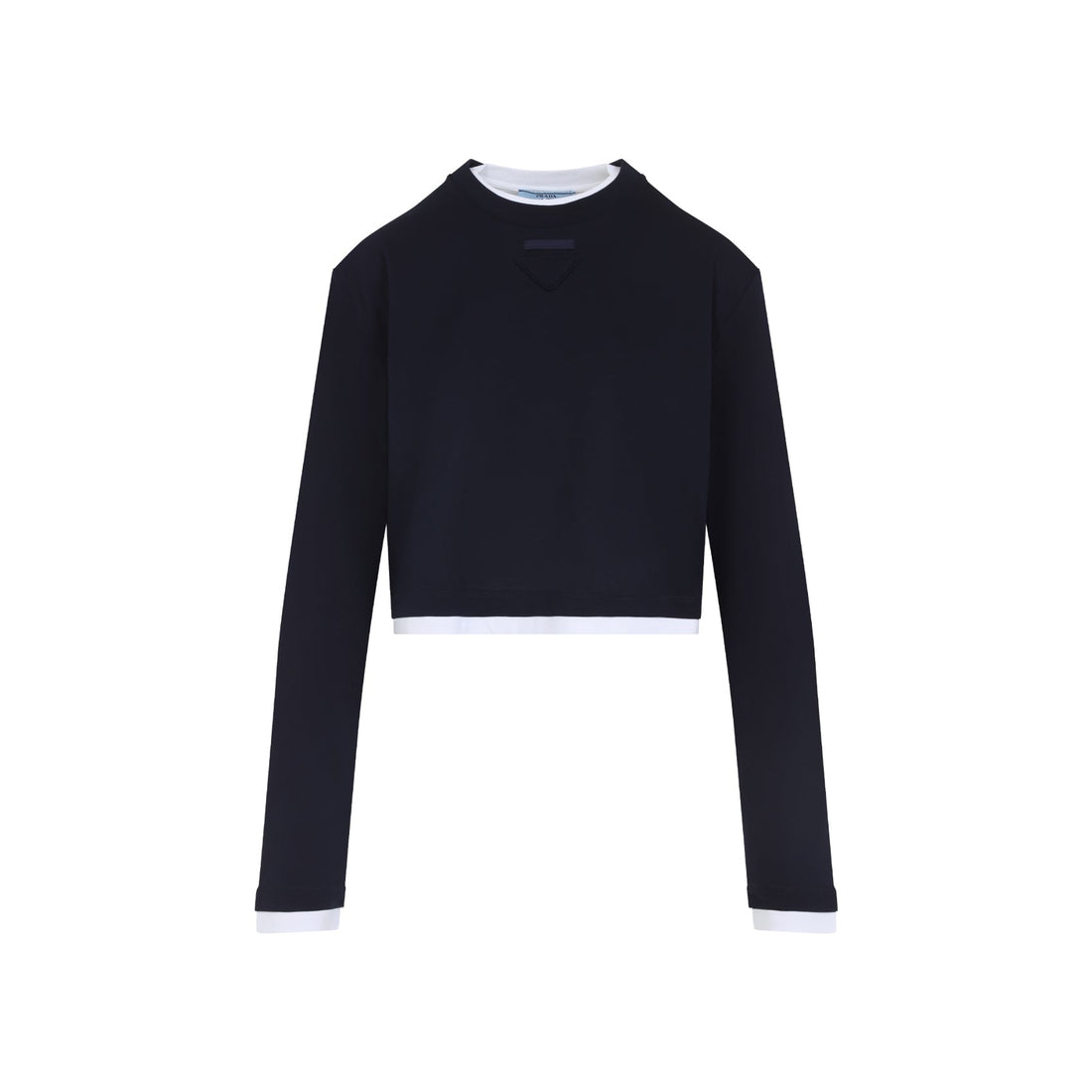 PRADA Cotton Crew-Neck Sweater with Cut-Out Front Details
