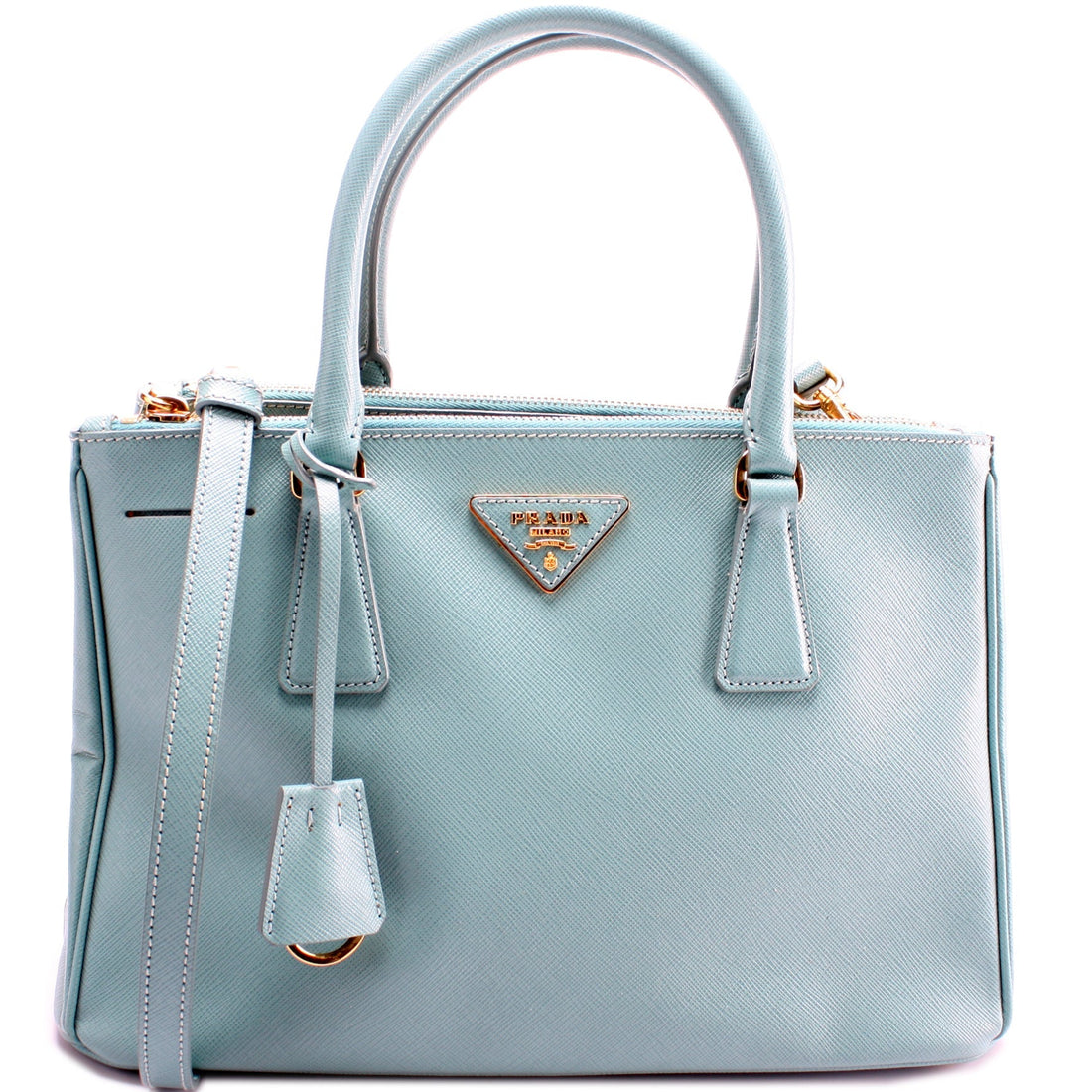 This Prada Galleria Smallis eye catching bag. The exterior is in the classic Prada Saffiano...