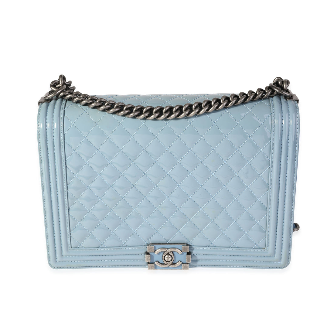 Listing Title: Chanel Light Blue Quilted Patent Leather Large Boy BagSKU: 120762Condition: Condition Description: An...
