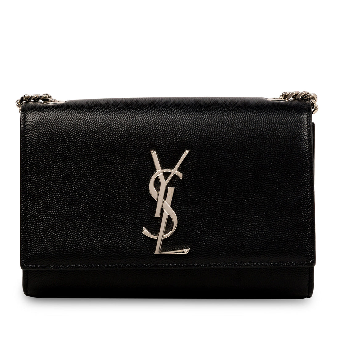 Crafted from classic black supple grained leather, the Kate bag from Saint Laurent is the ideal...