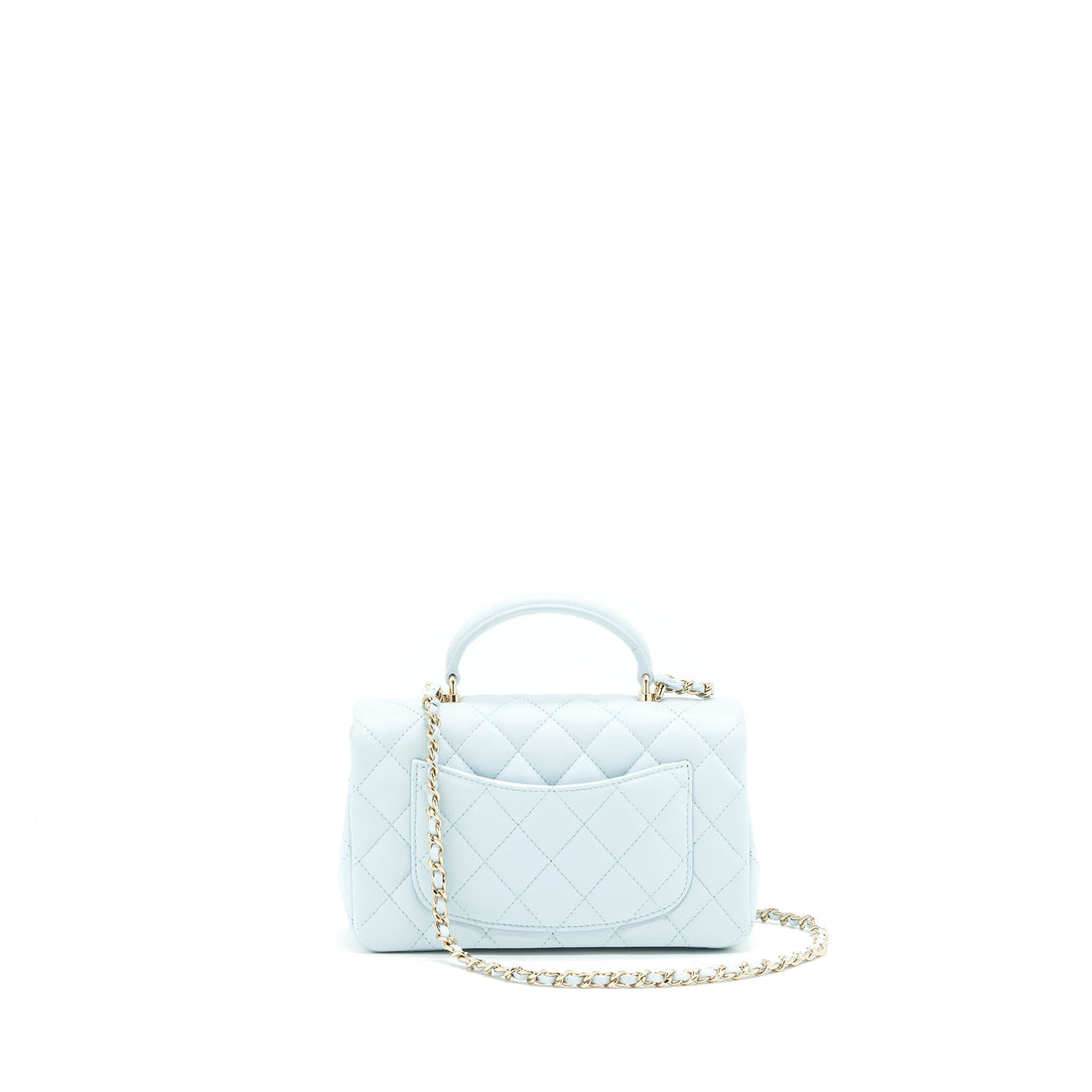 Chanel 21K Mini Top Handle Rectangular Flap Bag Pastel Blue LGHW
