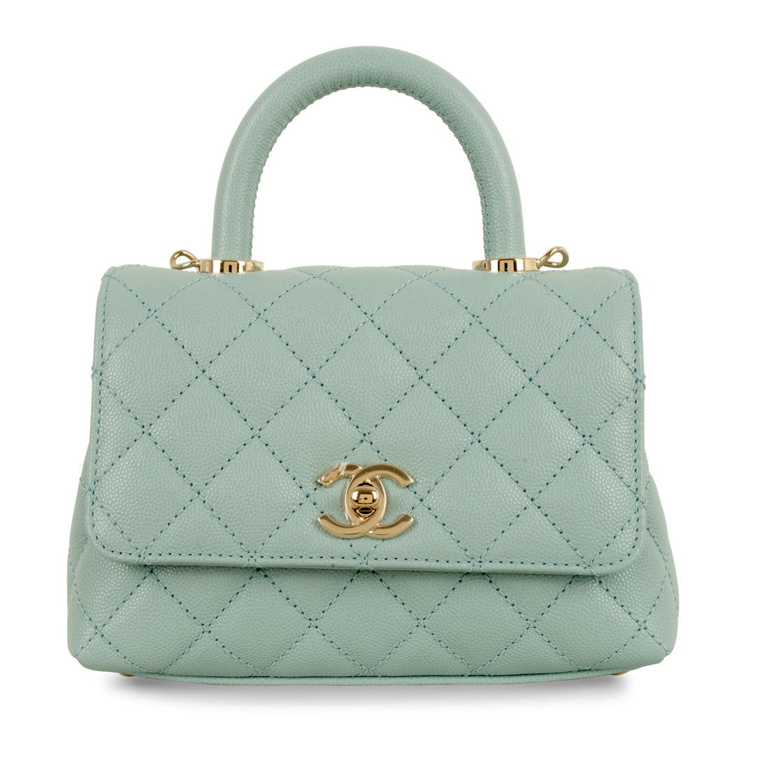 The Mini Coco Handle, crafted from a baby blue caviar leather, is the smallest of the...
