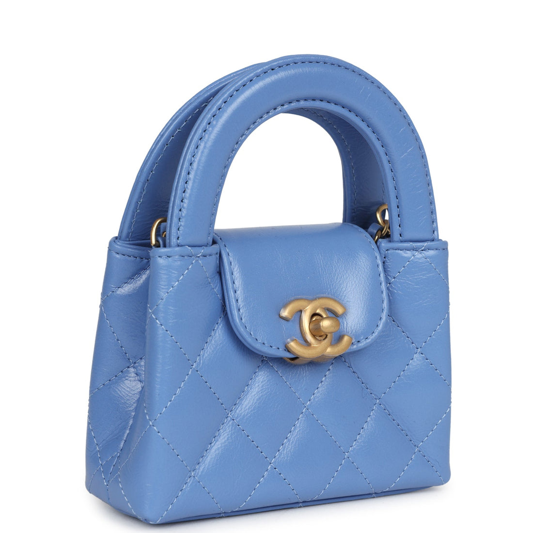 Chanel Nano Kelly Shopper Blue Shiny Aged Calfskin Brushed Gold Hardware